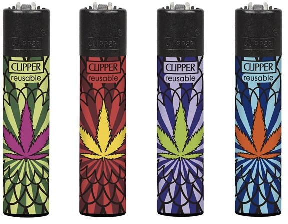 Clipper öngyújtók a Hypnotic Leaves nevű gyűjtői kiadásból. Az öngyújtókra színes kenderlevelek motívumai vannak nyomtatva. Ebben a készletben 4 öngyújtót talál. Minden egyes gyűjtői Clipper öngyújtó, a minőségi nyomtatás mellett, kiváló minőségű és erős nejlonból készül, így ellenáll a durva kezelésnek vagy akár egy kisebb esésnek is. Az öngyújtók előr