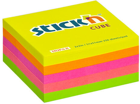 Öntapadó jegyzettömb STICK`N 51x51mm neon mix 250 lap Méret: 51 x 51 mm Csomag tartalma: 250 lap Szín: vegyes neon Leírás: Öntapadó jegyzettömb neon színekkel Könnyen felhelyezhető és ragasztómaradvány nélkül visszaszedhető.