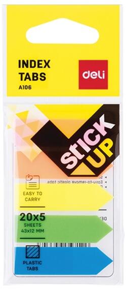 Típus:Jelölõcímkék, Méret:44x12mm, Anyag:Műanyag, Egyéb tulajdonság:Öntapadós, Kiszerelés db:5x20lapos, Felület színezése:Többszínű, Lapok száma:5x20lapos,