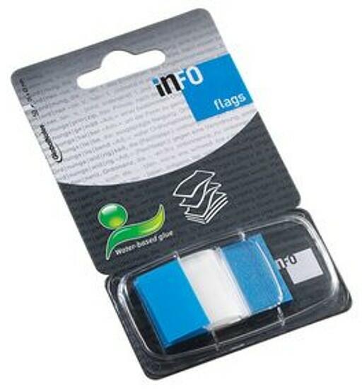 Jelölőcímke, GLN Info Flags 25x43mm, 50 lap, transzparens/kék.
