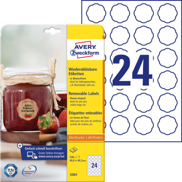 Címke mérete: 40,8 x 40,3 mm Avery Zweckform 40,8 x 40,3 mm méretű, fehér színű, matt felületű, univerzális öntapadós etikett címke, A4-es lapon, visszaszedhető ragasztóval, valamint garantált elakadásmentes nyomtatással. Rendelési azonosító: Avery Zweckform 5084 . Nyomtatható: fekete-fehér és színes lézernyomtatókban, tintasugaras nyomtatókban, valamint fénymásológ