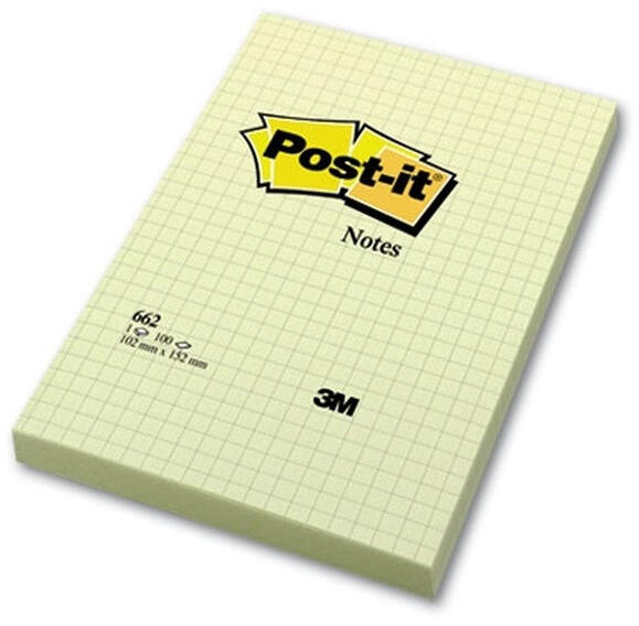 Post-it 102x152mm kockás öntapadós sárga jegyzettömb
