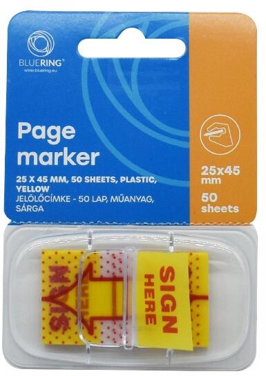 JELÖLŐCÍMKE MŰANYAG 50 LAP 25X45 MM ALÁÍRÁS IKON SÁRGA BLUERING