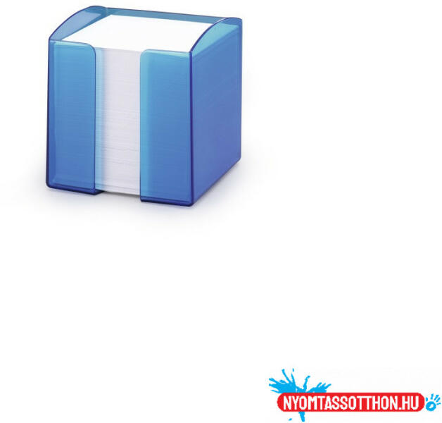 Jegyzettömb tartó, Durable Trend, áttetsző kék Praktikus jegyzettömbtartó, 800 fehér papírral (90x90 mm). Az egyes lapok könnyen kivehetők. Méret: 100 x 105 x 100 mm (H x SZ x M)