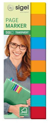 Jelölőcímke, műanyag, 10x50 lap, 44x12,5 mm, SIGEL, vegyes színek információk színkódos jelölésére könnyen áthelyezhető írható PP anyag oldószermentes