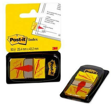Jelölőcímke, műanyag, 50 lap, 25x43 mm, 3M POSTIT, ikonos, aláírás - a Post-it® Index előre nyomtatott jelölőcímkék egyértelmű üzenetei segítségével időt takaríthat meg saját maga és ügyfelei számára - 50 db címke/adagoló