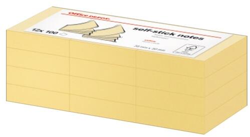 Méret:38x51mm, Típus:Jegyzettömb, Szín:Sárga, Anyag:Papír, Papír méret:3,8x5,1cm, Egyéb tulajdonság:Öntapadós, Kiszerelés db:12tömb/csomag, Lapok száma:100, Vonalazás típusa:Sima,