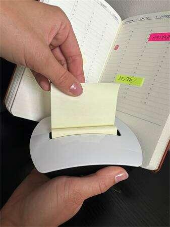 STICK'N jegyzettömb adagoló "Z" jegyzettömbhöz, használja könnyedén, egykézzel-tökéletes amikor éppen telefonál vagy egyik keze foglalt -az adagolóból kihúzva egy lapot, a következő máris készen áll a használatra -fehér színű -letisztult desing -76x76 mm méretű "Z" öntapadó jegyzettömbök adagolására alkalmas