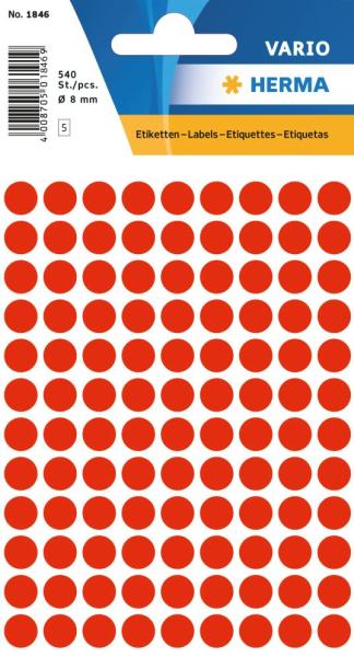 Címke mérete: 8 mm átmérőjű kör alakú jelölőcímke Herma 8 mm átmérőjű, neon piros színű jelölő pötty, jelölő pont. Egy csomagban 5 lapon, összesen 540 darab jelölő címke található. A Herma 1846 cikkszámú öntapadó jelölőcímke nem nyomtatható, nem fénymásolható. Kizárólag kézzel írható, kézzel feliratozható címke. Címke mérete: 8 mm átmérőjű körc