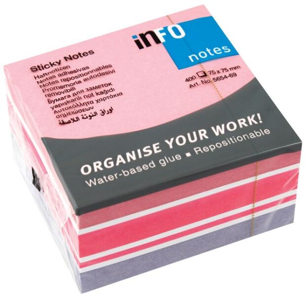 Klasszikus méret -400 öntapadó lap/tömb -különféle vonzó szín -könnyű felhelyezés -ragasztómaradvány nélkül visszaszedhető Kiszerelés: 400 lap/csom