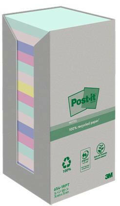 A gyártó az újrahasznosított Post-it® jegyzettömb esetében különös gondot fordított az alapanyagok környezetre gyakorolt hatására. -anyaga 100% újrahasznosított papír -PEFC RECYCLED minősítéssel rendelkeznek, és minősített, megújuló és felelős erdőgazdálkodásból származnak -megújuló forrásból származó ragasztóval, ami 60%-ban évelő növényből készül -a