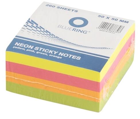 STICK'N öntapadó jegyzettömb -4 féle neon szín/tömb -100 lap/tömb Csomagolási egység: 100 lap Alcsoport öntapadó jegyzettömb Méret 76x76 mm Anyag papír Szín vegyes Típus sima Forma normál Extraerõs Nem Teljes felülete tapad Nem Biológiai úton lebomló Nem Újrahasznosított anyagból Nem Környezetbarát gyártás Nem