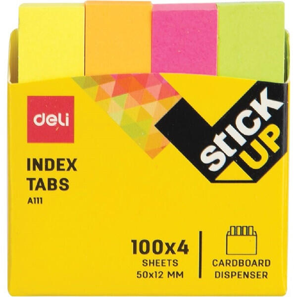 Deli Stick Up 50x12 mm 4x100 lap neon papír jelölőcímke Jelölőcímke, papír, 4x100 lap, 50x12 mm, DELI "Stick UP", neon szín