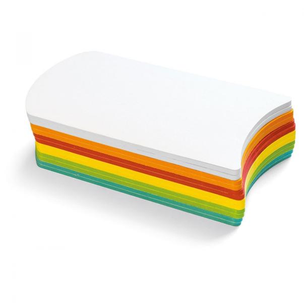 9,5 cm x 20 cm 300 db/csomag Újrahasznosított papírból készült 130 g/m2 Színek: 2-2 tömb (25 lap) fehér, piros, kék, zöld, sárga és narancs Új! Hatékonyan alkalmazható, ha pl. kommunikációs folyamatok egymás utániságát vagy gondolatok logikai összefüggéseit kívánjuk bemutatni.