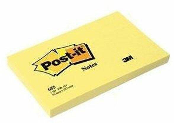 Klasszikus Post-it jegyzettömbök kanári sárga színben. 76x127 mm 12x100 lap/csomag.