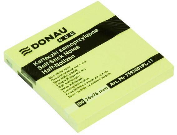 Öntapadó jegyzettömb DONAU ECO 76x76 mm 100 lap sárga Öntapadó jegyzettömb 100 lapos. Ideális jegyzetek és üzenetek számára. Lapok mérete: 76 x 76 mm