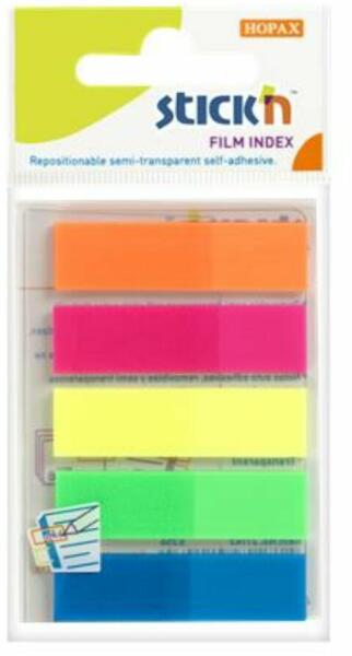 A Jelölőcímke, műanyag, 5x25 lap, 45x12 mm, STICK N, neon színek (SN21050) Átlátszó és írható műanyag öntapadó oldaljelölők -egyszerű jelölés és rendszerezés -ragasztómaradvány nélküli használat - 5 féle élénk neon szín-hez készült, kiváló minőségű nyomtatási megoldást kínál. Tökéletes választás azok számára, akik megbízható teljesítményre vágyna