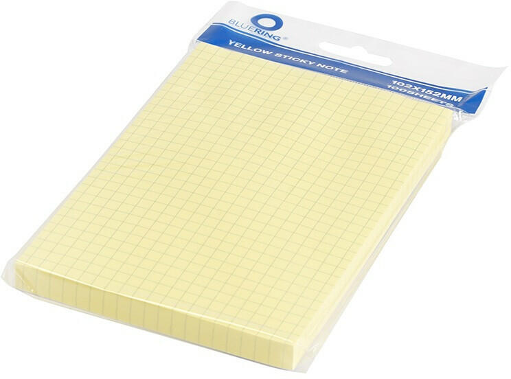 JEGYZETTÖMB ÖNTAPADÓ 100 LAP 102X152MM KOCKÁS SÁRGA BLUERING Méret: 100 × 150 mm Kivitel: 100 lapos Megjegyzés: négyzethálós nagyméretű öntapadó jegyzettömb, hosszabb jegyzetek készítéséhez könnyen áthelyezhető, jó tapadóképesség oldószermentes ragasztóanyag, nyom nélkül eltávolítható Katalóguskód: 2348