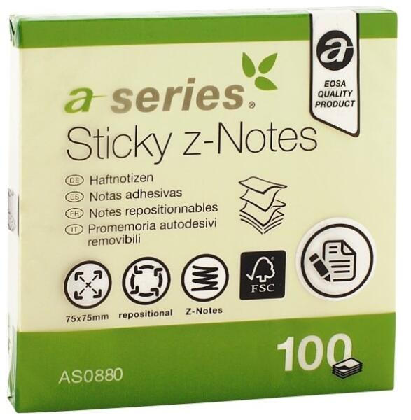 JEGYZETTÖMB `Z` ÖNTAPADÓ 100 LAP 76X76 MM SÁRGA A-SERIES