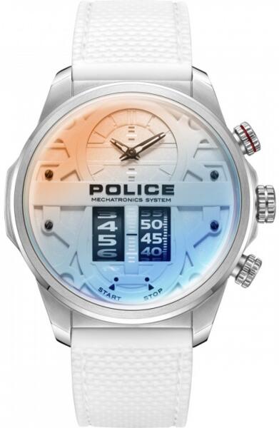 Police Rotorcrom férfi karóra PEWJM0006506 egy kerek formájú, ezüst színű nemesacél óratokkal, fehér analóg számlappal és fehér szilikon szíjjal rendelkező divatos Police karóra. Az óra elemmel működő kvarc szerkezettel és 5 ATM vízállósággal rendelkezik, tehát mérsékelten vízálló. Ez a fantasztikus óra most 123900 áron megrendelhető webshopunkban, melyre 24 hón
