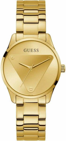 Eredeti Doboz, Pontos óraszerkezet , Kiváló minőségű anyagok, kifinomult tervezés 2év Magyar jótállás, 15 napos pénzvisszafizetés Guess Emblem női óra karóra GW0485L1 nemesacél tok, arany bevonat, csiszolt nemesacél szíj, arany bevonat, csiszolt, összecsukható kapocs Quartz szerkezet, elemes vízállóság számlap szín arany ház szélesség around 37 mm tok magasság around
