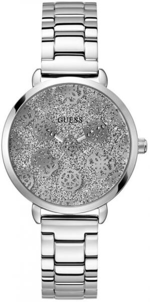 Eredeti Doboz, Pontos óraszerkezet , Kiváló minőségű anyagok, kifinomult tervezés 2év Magyar jótállás, 15 napos pénzvisszafizetés Guess Sugarplum női óra karóra GW0670L1 nemesacél tok, ezüst bevonat, csiszolt nemesacél szíj, ezüst bevonat, csiszolt, összecsukható kapocs Quartz szerkezet, elemes vízállóság köves számlap számlap szín ezüst ház szélesség around 36 m