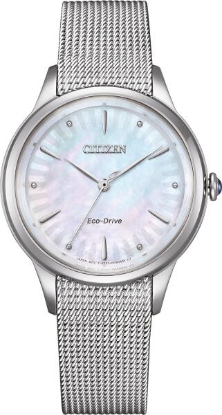 Citizen EM1150-86D Női Karóra - Eco-Drive LadyA Citizen EM1150-86D női karóra kifinomult eleganciát és modern technológiát kínál az Eco-Drive rendszer segítségével. Ez az órák új dimenzióját képviseli, ahol a környezettudatosság találkozik a stílussal. A gyöngyházfehér számlap tiszta vonalakkal és pontjelölésekkel tökéletesen kiegészíti a karcsú, rozsdamentes ac