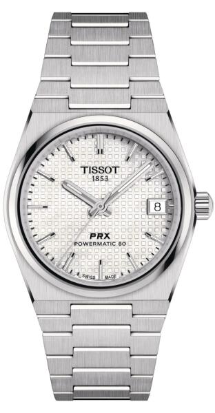 Tissot T137.207. 11.111. 00 Női Karóra - PRX Powermatic 80 35mmA Tissot PRX Powermatic 80 35mm női karóra egy időtálló és modern elegancia tökéletes kombinációja. A 35 mm-es acéltok és a fehér gyöngyház számlap finoman idézik a Tissot 1978-as hagyományait. A számlap diszkrét, rácsos mintázata új szintre emeli a gyöngyház tervezési esztétikáját, és univerzális, nemt