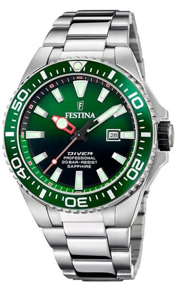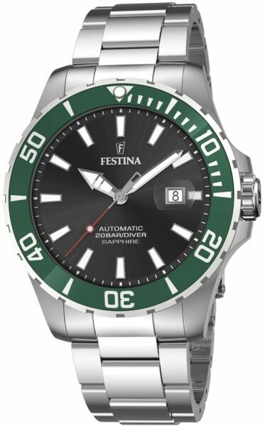 Ha egy olyan órát keresel, amellyel kitűnhetsz, jó helyen jársz, mert nem marad észrevétlen. Az óra ezüstös megjelenése tökéletesen párosul majd az egész öltözékeddel. Festina 20531/2 férfi karóra automata szerkezetű, fémpántos kivitelben. Az óra ezüstös megjelenését gyönyörűen kiegészíti a lünetta sötétzöld színe, így ez a modell egy igazán különleges dar