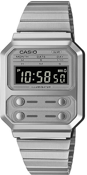Casio A100WE-7BEF Férfi Karóra - VintageA Casio A100WE-7BEF férfi karóra egy klasszikus Casio design újraértelmezése, amely a vintage stílust ötvözi a modern funkciókkal. Ez a modell a híres F-100 sorozat előtt tiszteleg, amely Casio első műanyag tokozású órája volt. A négy ikonikus gomb a karóra elején, valamint a fémből készült elemek tökéletesen kiegészítik a retro