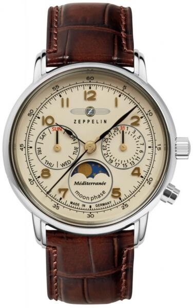 Gyártói szám. : 9637-5 Manufacturer series: Méditerranée Mondphase 36mm 5ATM funkciók: dátum, nap, óra, perc, Holdfázis, másodperc szerkezet: elemes (Quartz) szerkezet label: 706.1, Ronda, Swiss Made, 1 ékszer számlap szín: Créme kijelző: analóg vízállóság: 5 keret: fix felület : csiszolt tok szín: ezüst tok anyag: nemesacél tok átmérő: 10 tok alak: kerek ház szélessé