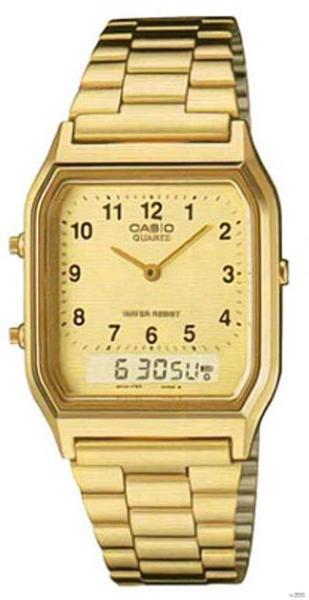 Casio Retro fémszíjas uniszex karóra. Referenciaszám: AQ-230G-9D Súly: 44 gramm Méret: 38,8 x 27,8 x 8,1 mm Szíj típus: Rozsdamentes nemesacél fémcsat, mely a legtartósabb kivitelnek számít. A rozsdamentes nemesacél szíj a kéz izaddságának ellen áll. Tok típus: A karóra tokozása plasztik műanyagból készült, könnyű súlya és variálhatósága miatt kedvelt viselet. Szer