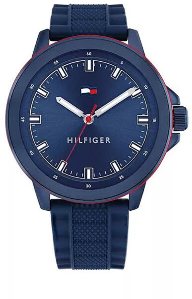 A képen látható Tommy Hilfiger Nelson TH1792022 férfi karóra megbízható, kvarc szerkezettel rendelkezik. Ez a modell jól látható ásványi kristály üveggel, kék színű számlappal tűnik ki a többi Tommy Hilfiger márkájú karóra közül. Az óraszerkezetet és a számlapot egy kék színű rozsdamentes acél tok védi. A karóra kék színű szilikon szíja kényelmes viselési