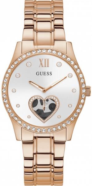 Ez az egyedi óra első látásra elvarázsolja Önt. A Guess GW0380L3 női karóra tökéletes a romantikus, szépérzékkel és kifinomultsággal rendelkező nők számára. A kerek formájú, tömör lünetta csillogó kristályokkal van borítva. A minimalista kijelzőn a számlap számjegyeit dekoratív strasszkövekkel helyettesítették, van egy eredeti, szív alakú motívum is. Az óra r