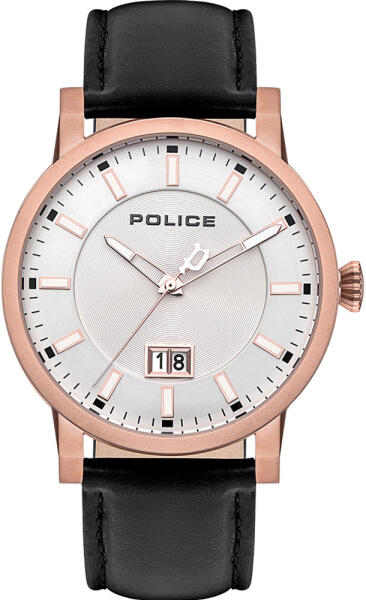 Police férfi karóra PL15404JSR/04 egy kerek formájú, rosegold színű nemesacél óratokkal, ezüst analóg számlappal és fekete valódi bőr szíjjal rendelkező divatos Police karóra. Az óra elemmel működő kvarc szerkezettel és 5 ATM vízállósággal rendelkezik, tehát mérsékelten vízálló. Ez a fantasztikus óra most 32950 áron megrendelhető webshopunkban, melyre 24 hónap g