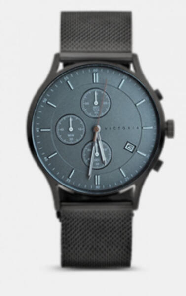 Victoria Férfi fekete fém szíjas karóra Fekete színű. Anyaga: rozsdamentes acél 3 ATM vízálló!