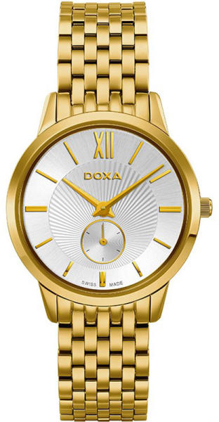 Egy svájci Doxa óra kizárólag minőségi alapanyagokból készül a szerkezeten át a tokon, üvegen keresztül egészen a szíjig bezárólag. A Doxa órák kollekciójában egyaránt megtalálhatóak a férfi és a női szíveket megdobogtató darabok. Aképen láthatóDoxanői karóra tok anyaga nemesacél, színe arany, a szíj anyaga nemesacél és a színe arany. A z óratok átmérője