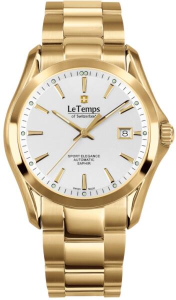 A Le Temps Sport Elegance Automatic LT1090-81BD01 férfi karóra a stílus és teljesítmény találkozása! Az 40,5 mm átmérőjű tok és az arany színű rozsdamentes acél szíj elegáns megjelenést kölcsönöz. Vízállósága 10 atm , biztosítva a strapabíróságot. Az automatikus szerkezet precíziót és kifinomultságot nyújt, ideális választás a modern férfiak számára.