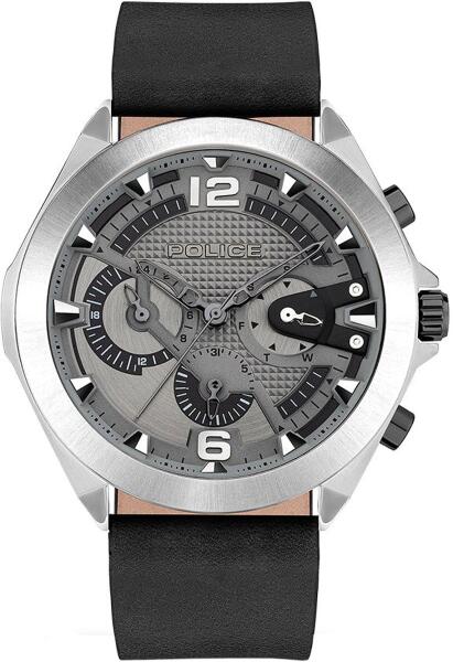 Eredeti Doboz, Pontos óraszerkezet , Kiváló minőségű anyagok, kifinomult tervezés 2év Magyar jótállás, 15 napos pénzvisszafizetés Police Zenith PEWJF2108701 férfi óra karóra Multifunctional nemesacél tok, ezüst bevonat, csiszolt / matt bőr szíj, fekete, tűzött szij Quartz szerkezet, elemes naptári nap kijelző, dátumkijelzés, 24 órás kijelző számlap szín fekete / szü