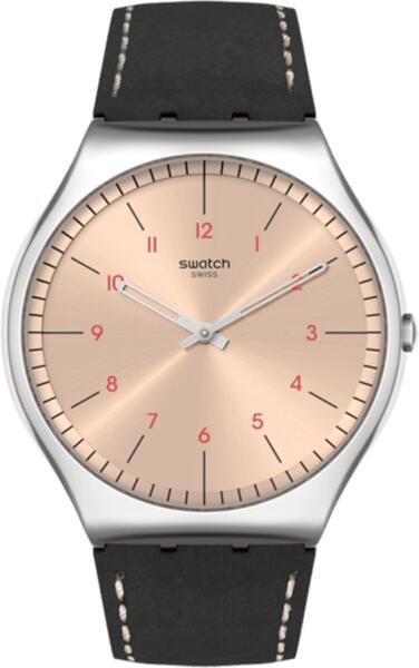 Swatch Smart Stitch unisex karóra SS07S118 egy kerek formájú, ezüst színű nemesacél óratokkal, rosegold analóg számlappal és fekete valódi bőr szíjjal rendelkező divatos Swatch karóra. Az óra elemmel működő kvarc szerkezettel és 3 ATM vízállósággal rendelkezik, tehát cseppálló. Ez a fantasztikus óra most 73900 áron megrendelhető webshopunkban, melyre 24 hónap garanc