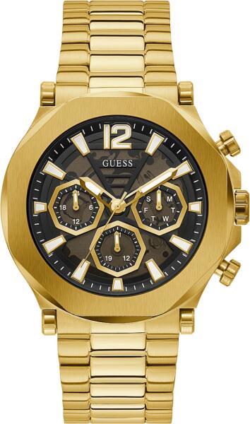 A Guess férfi karóra GW0539G2 az Edge kollekcióból sportos-elegáns megjelenéssel rendelkezik, amely kétségtelenül tetszeni fog Önnek. A kiegészítő aranyszínű kialakítása tökéletesen kiegészíti a fekete kijelzőt. Kiváló minőségű, tartós sebészeti acélból készült. A sima lünetta masszív és egyedi formája jellemzi. Az óra számlapja egyszerű, a mutatók az index