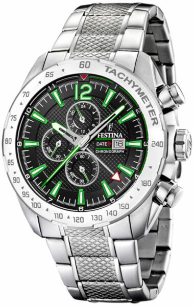 Vízállóság szűrő: fürdésre - úszásra alkalmas | Szerkezet típusa: Elemmel működő quartz | Óratok anyaga: Nemesacél | Szíj: Fémszíj | Üveg: Ásványi üveg | Vízállóság: 100 m | Óratok színe: Ezüst | Számlap színe: Fekete | Szíj szín: Ezüst | Óratok szélesség: 44 mm | Funkciók: Dátum, Stopper, 24 órás kijelző (F20439/6)