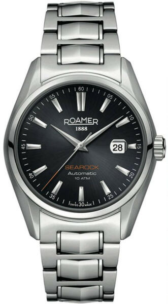 A képen látható Roamer Searock 210633 41 55 20 férfi karóra megbízható, automata szerkezettel rendelkezik. Ez a modell jól látható zafírkristály üveggel, fekete színű számlappal tűnik ki a többi Roamer márkájú karóra közül. Az óraszerkezetet és a számlapot egy ezüst színű rozsdamentes acél tok védi. A karóra ezüst színű rozsdamentes acél szíja kényelmes visel
