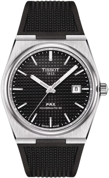 Tissot PRX Powermatic 80 férfi karóra T137.407. 17.051. 00 egy hordó formájú, ezüst színű nemesacél óratokkal, fekete analóg számlappal és fekete szilikon szíjjal rendelkező divatos Tissot karóra. Az óra mechanikus (automata) szerkezettel és 10 ATM vízállósággal rendelkezik, tehát fürdésre, úszásra használható. Ez a fantasztikus óra most 281428 áron megrendelhető we