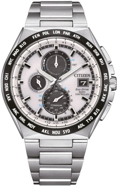 Citizen Rádióvezérlésű világidő óra Super Titanium anyagból készült Eco-Drive férfi karóra típusa AT8238-84A. Könnyű, rádiópontos és a világidő mindig a fókuszban. Így jellemezhető a Super Titanium sorozat új AT8238-84A kronográf modellje. Különösen a világjárók örülnek majd a 26 elérhető időzónának: Tokió, New York, Párizs és sok más város gyorsan elér