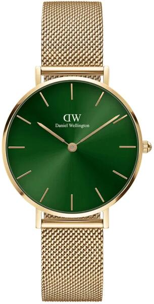 Daniel Wellington Petite Emerald női karóra DW00100480 egy kerek formájú, arany színű nemesacél óratokkal, zöld analóg számlappal és arany nemesacél szíjjal rendelkező divatos Daniel Wellington karóra. Az óra elemmel működő kvarc szerkezettel és 3 ATM vízállósággal rendelkezik, tehát cseppálló. Ez a fantasztikus óra most 71900 áron megrendelhető webshopunkban, melyre