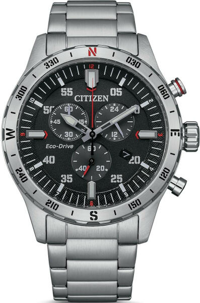 Férfi Citizen AT2520-89E karóra sportos-elegáns kivitelben kronográffal Az Eco-Drive a Citizen szabadalmaztatott rendszere. A természetes és mesterséges fény áthalad a számlapon, és a napelemet éri. Ez a napenergiát elektromos energiává alakítja és feltölti a mikroakkumulátort. Ennek a rendszernek köszönhetően nincs szükség az óra elemeinek cseréjére. Ásványi üveg - A