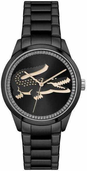 Lacoste Ladycroc női karóra 2001192 egy kerek formájú, fekete színű nemesacél óratokkal, fekete analóg számlappal és fekete nemesacél szíjjal rendelkező elegáns Lacoste karóra. Az óra elemmel működő kvarc szerkezettel és 3 ATM vízállósággal rendelkezik, tehát cseppálló. Ez a fantasztikus óra most 47530 áron megrendelhető webshopunkban, melyre 24 hónap garanciát adu