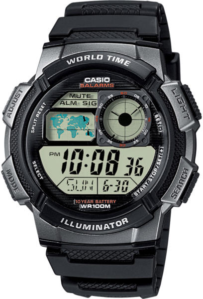 Nem: Férfi Stílus: Sport Szín: fekete, szürke Szíj: Gumi / műanyag Tok szín: Fekete Tok anyag: Műanyag Szerkezet: Quartz (elemes) Analóg/Digitális: Digitális Funkciók: Stopper, Dátum, Ébresztő, Öröknaptár, időzóna kijelzés Forma: Kerek Vízállóság: 100 m Súly: 40 g Magasság: 13.7 mm Szélesség: 43.7 mm Hosszúság: 48.1 mm Világóra funkció A világidő funkció a vil