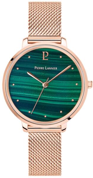 100% rozsdamentes acél női karóra, rozé arany színű PVD bevonattal. Különleges mintázatú, valódi Malachit (féldrágakő) számlap. Rozé arany PVD bevonatú mutatók és indexek. Megbízható japán Miyota kvarc szerkezet. Rozsdamentes acél milánói szíj biztonsági zárral. Igazán nőies ideális méretű óratok! Óraszerkezet : Miyota (japán) quartz Óraszíj : Rozsdamentes ac